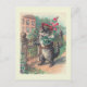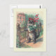A really pretty vintage image of a cat delivering roses and a sealed letter to a home.