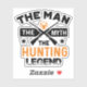 Typography graphic with crossed rifles and deer head in crosshairs that reads: "The Man The Myth The Hunting Legend". Click "Personalise" to change image and background colour! | Image by designs_area | Shutterstock. Image ID: 1878647998 | Shutterstock® - All Rights Reserved.