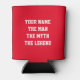 The man the myth the legend bottle / can cooler for men. Cute Fathers Day gift idea. Funny quote for dad on Father's Day or Birthday. Personalizable text and background colour. Cosy gift idea for daddys manly man cave or tailgate party. Vintage masculine typography. Keeps beer cool. Mens sports humour. Doubles sided rustic print. The man the myth the legend. Customisable background colour. Also fun for husband, uncle, grandpa, son, brother etc.