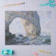 This painting by Claude Monet features  the beach and the three extraordinary rock formations in the area: the Porte d'Aval, the Porte d'Amont, and the Manneporte. The sunlight that strikes the Manneporte has a dematerialising effect that permitted the artist to interpret the cliff almost exclusively in terms of colour and luminosity.