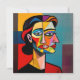 The Mask and the Monster - Portrait of a Deceiver. A vivid cubist portrait capturing the haunting dichotomy of a woman with a polished, genteel façade hiding a snarling, vindictive temperament. The dual expressions symbolise the disarming charm and sudden cruelty some individuals wield, revealing their sociopathic tendencies through psychological manipulation and coercive control.