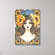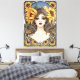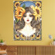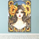Sunflowers frame a serene, vintage-inspired portrait on a canvas print.. The artwork—warm golds, deep blues, and delicate linework—evokes a quiet afternoon in a sunlit garden. Original artwork in watercolor and ink by artist Terrell Dorfeo, with details assisted by AI to make this piece unique.