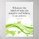 Motivational Quote : Whatever the mind of man can conceive or believe, it can ACHIEVE! ~ Napoleon Hill. This inspirational quote canvas and poster is great as a self-motivator, or as a gift for friends and family, so that they're inspired everyday as they look as the quote. It's also great as a corporate motivational tool to inspire your team at the work place to strive towards excellence. The quote appears in a crisp font over an elegant artwork background comprising vines and leaves in green hues.