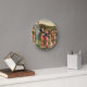 The clock did not take as long to arrive as I thought it might and was extremely well packaged. I didn't do the measurements so I didn't realize it is a little smaller than the average clock but that does not matter (just make sure you check if that's important to you).It is really nifty! It seems very solid and well made not flimsy at all. It has been going well and has kept good time in its few weeks on my wall. Nice product. Gets noticed too! Nicer in real life than the picture but true to the picture
