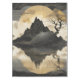 This painting depicts a moonlit forest, with a lone tree standing tall. The moon and mountain is reflected in the water below, creating a beautiful and serene scene. The painting is a reminder of the beauty and mystery of nature.