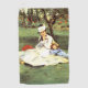 The Monet family in their garden. Edouard Manet . Summer landscape. A woman in a beautiful dress and hat is sitting in the garden under a tree on the grass. A boy is sitting on the grass nearby. Reproduction of famous works of art images in the public domain.