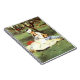 The Monet family in their garden. Edouard Manet . Summer landscape. A woman in a beautiful dress and hat is sitting in the garden under a tree on the grass. A boy is sitting on the grass nearby. Reproduction of famous works of art images in the public domain.