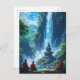 This artwork captures a moment of deep introspection, where the monks find Stillness in the Water's Roar. The vibrant blues of the sky and the crystalline cascade contrast beautifully with the earthy tones of the ancient pagoda and the monks' saffron robes. It's a visual symphony of nature and spirituality.