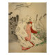 In The Tale of the Heike, Yokobue, a maidservant of Empress Dowager Kenrei-mon’in, is loved by Saito Tokiyori, a retainer of Shigemori. Social constraints prevented Tokiyori from pursuing Yokobue, leading him to renounce the world and retreat to Horinji Temple in Sagano. Heartbroken, Yokobue returned in tears, with some accounts suggesting she entered Hokke-ji Temple or drowned herself. Yoshitoshi’s One Hundred Aspects of the Moon depicts this tragedy using seasonal imagery and a hazy moon, enhancing its emotional depth. The tale reflects spiritual transformation, female resilience, and noh drama's peaceful resolutions, captivating audiences with its enduring themes.