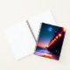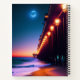 Personalised bullet journal for beach lovers features a pier with lit lampposts and a glowing full moon at dusk. Design created using AI software. Paper type can be changed.