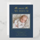 Share the joy of your growing family with The More The Merrier Blue New Baby Birth Foil Holiday Card, a modern and elegant way to announce your little one’s arrival this holiday season. Featuring bold, contemporary typography and a custom photo framed in real foil—available in gold, silver, or rose gold—this design brings a festive shimmer to your holiday greetings.