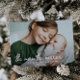 Modern Christmas birth announcement card featuring hand lettered typography that says "the more the merrier" with a heart. This is a birth announcement card for the holiday seasons! Add your photos, birth stats, and a message!