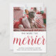 cute & simple new pet dog or any other pet announcement card during the winter or holidays season with a personalised photo, the back features a knitted ugly sweater pattern red and green background. Share with your friends and family the exciting news of getting a new dog, puppy or any other pet!