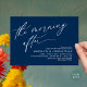 Mark the beginning of your forever with elegance using our romantic contemporary classy navy blue themed wedding elopement happily ever after brunch party celebration invitation card, "The Morning After". Perfect for couples extending their joyous occasion, this invitation exudes sophistication with a hint of playfulness, setting the stage for a memorable event. Adorned with a timeless modern script design theme, it adds a touch of refined charm to your festivities. Crafted by TeeshaDerrick, this invitation promises to beautifully capture your love story.