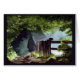 A scenic view along a wood lane, with the morning mist still in the meadow on the right. An old lady talking a leisurely walk befor the hectic day. Reproduction of an original watercolor painting.