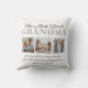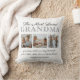 Modern mothers day photo pillow featuring the cute saying "the most loved grandma", 3 pictures of the grandkids, their names, and the caption "grandmas hold our tiny hands for just a little while, but our hearts forever".