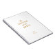 Personalised The Mother of the Bride spiral notebook. Classic script and block text with bride and groom initials and wedding date text field. Gold text on a black background.