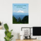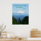View of snow covered, majestic Mt. Hood as seen from Portland, Oregon, with quote by John Muir: "The mountains are calling and I must go."