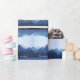 Mountain silhouettes and reflections in shades of blue, with customisable text. Sample text is based on a quote by naturalist John Muir, and can be changed or deleted.
