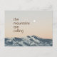 Photograph of the Park City, Utah mountain ridge line with the text "The Mountains are Calling". Muted twilight tones of greys, pinks, oranges and purples.