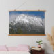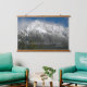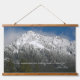 Decorate your living space with this horizontal, hanging wall tapestry with wooden tops that features the photo image of a scenic, winter landscape of snowy mountains and forests along with an inspiring quote by naturalist John Muir and reads, "The mountains are calling and I must go."