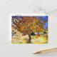 A fine art postcard with the painting, The Mulberry Tree (1889), by Vincent van Gogh (1853-1890), a Dutch Post-Impressionist artist. A landscape of a majestic tree with autumn-coloured leaves and a deep blue sky.