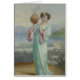 A beautiful Muse stands to celebrate spring with flowers. They may be apple blossoms. It is public domain by Edwin Mulready. It said they all are and from the 1800s and start of 1900s.
