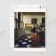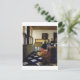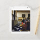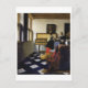 The Music Lesson by Johannes Vermeer, oil on canvas 1662 - 1665, is a carefully constructed geometric composition of a young woman standing at her virginal, taking a music lesson from a gentleman, her face reflected in the mirror above her. The richly textured interior, figures and objects recall Leonardo’s observation that objects partake of the colours of their surroundings to form an optical whole, and the three dimensional depth of the elaborate chequerboard floor likewise recalls the linear perspective of Renaissance painting.