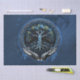 Water and Wisdom: The mystical Celtic Tree of Life. The tree of life held by two protective hands. The tree itself features a twisted, elegant trunk, symbolising vitality and flexibility. Its branches branch out artfully and bear a mixture of blue and green leaves, representing vitality and harmony. Small drops of water cascade from the branches, conveying freshness and purity. The entire complex is enclosed by a circular frame decorated with Celtic knot patterns. These patterns reinforce the mystical impression of the design and symbolise infinity and interconnectedness.