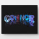 This image is a photograph of handmade letters, which change randomly, producing unique patterns and colours of light. The name Connor is reflected in still water, with floating foil hexagons. The letters look as if they're carved from crackled ice or crystal. If you can't find a name you want, please get in touch, and I'll put it on my list. Please see NamesInLights.co.uk for larger examples of the standard of photography on these products.