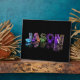 This image is a photograph of handmade letters, which change randomly, producing unique patterns and colours of light. The name Jason is reflected in still water, with floating foil hexagons. The letters look as if they're carved from crackled ice or crystal. If you can't find a name you want, please get in touch, and I'll put it on my list. Please see NamesInLights.co.uk for larger examples of the standard of photography on these products.