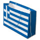The national flag of Greece has nine equal horizontal stripes of blue alternating with white with a blue square bearing a white cross appears in the upper hoist-side corner.Blue stands for sky and sea and limitless opportunities. White: represents clouds in the sky and waves in the sea and perpetual progress. The Cross symbolises Greek Orthodox Church, the established religion of Greece