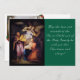 Design features a reproduction of the painting entitled, "The Nativity" by French painter Noel Coypel on front. A hunter-green background is featured at right displaying a customizable Christmas greeting in an elegant white font.