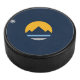 Hockey Puck with the new flag of the city of Reno, Nevada; a dark blue flag with a yellow sun and blue mountains in the centre