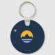 Keychain with the new flag of the city of Reno, Nevada; a dark blue flag with a yellow sun and blue mountains in the centre