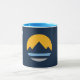 Mug with the new flag of the city of Reno, Nevada; a dark blue flag with a yellow sun and blue mountains in the centre