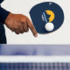 Ping Pong Paddle with the new flag of the city of Reno, Nevada; a dark blue flag with a yellow sun and blue mountains in the centre
