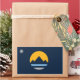 Sticker with the new flag of the city of Reno, Nevada; a dark blue flag with a yellow sun and blue mountains in the centre