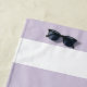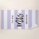 Our sweet personalised bride beach towel makes a perfect honeymoon gift for a newly married friend! Design features "The New Mrs. [lastname]" in modern, trendy black typography on a pastel lavender purple and white striped background. Easily customise with the bride's new last name using the field provided. Prefer this for a bride-to-be? Simply switch "new" to "future."