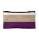 A great gift for a new bride. This little bag is perfect for getting all your makeup to the wedding or a perfect honeymoon carryall. Bold and bright plum purple offset the faux gold leather. Add your new last name and you wedding date to the back to make it truly one of a kind.