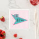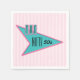 Package of 50 white paper cocktail napkins with an image of a blue and pink 50s diner sign with the text “The Nifty 50s” on soft pink-on-pink stripes. See matching cloth napkin, kitchen towel, cloth placemat, paper placemat and coasters. See the entire Nifty 50s Napkin collection in the FOOD/BEV | Linens section.