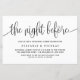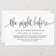 Let's celebrate the bride and groom before the wedding. Invite family and friends with this elegant rehearsal dinner invitation. It features whimsical calligraphy with classic typography. Personalise by adding names, date, address and other details. This script The Night Before invitation is perfect for any wedding season and theme.