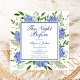This "The Night Before" blue hydrangea rehearsal dinner invitation is romantic, whimsical and stunning! With its watercolor multi-hued blue hydrangeas, wispy natural greenery and modern yet traditional classic script font it is perfect for any bride. Having your qr code on the back will make rsvping to your rehearsal dinner easy and convenient for your guests. By selecting Personalise this template and typing in your information and uploading your qr code you can see your gorgeous invitations in seconds!