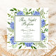 This "The Night Before" blue hydrangea rehearsal dinner invitation is romantic, whimsical and stunning! With its watercolor multi-hued blue hydrangeas, wispy natural greenery and modern yet traditional classic script font it is perfect for any bride. Having your qr code on the back will make rsvping to your rehearsal dinner easy and convenient for your guests. By selecting Personalise this template and typing in your information and uploading your qr code you can see your gorgeous invitations in seconds!