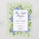 This "The Night Before" blue hydrangea rehearsal dinner invitation with your qr code is perfect for your party. It's lovely watercolor flowers and clean type navy blue script with a soft green background for the flowers and foliage make it stunning, modern yet classic! Having your qr code on the back will make rsvping to your rehearsal dinner easy and convenient for your guests. It's super easy to customise these invitations by selecting "Personalise this Template", typing in your information, and uploading your qr code. In a flash you will see your gorgeous rehearsal dinner invitations.