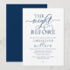 "The Night Before". Modern romantic minimalist Classy design themed, wedding rehearsal dinner invitation card in navy blue theme. Planning a wedding Rehearsal Dinner celebration with the to-be Bride and to-be Groom, before their BIG day? Invite the guests with this perfect Wedding Rehearsal Dinner Invitation Card. Easily edit it with your rehearsal dinner invitation details.