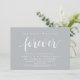 Announce your happily ever after in style with our modern rustic theme design (The Night Before Forever) wedding rehearsal celebration invitation card. It is ideal for couples who have decided to celebrate the night before their big day. With its sophisticated yet playful design, this invitation is sure to set the tone for an unforgettable event. The invitation card features chill grey design, adding a touch of timeless elegance to your celebration. Designed by TeeshaDerrick