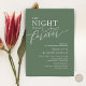 Planning a wedding romantic classy Rehearsal Dinner celebration with the to-be Bride and to-be Groom, before their BIG day? Invite the guests with this "the night before forever" Perfect modern romantic sage green Wedding Rehearsal Dinner Invitation Card.