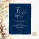 "The Night Before". Modern romantic minimalist design themed, wedding rehearsal dinner invitation card (in navy blue, portrait orientation theme). Planning a wedding Rehearsal Dinner celebration with the to-be Bride and to-be Groom, before their BIG day? Invite the guests with this perfect Wedding Rehearsal Dinner Invitation Card. Easily edit it with your rehearsal dinner invitation details.