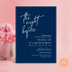 Announce your happily ever after in style with our modern portrait Navy Blue theme design (The Night Before) wedding rehearsal celebration invitation card. It is ideal for couples who have decided to celebrate the night before their big day. With its sophisticated yet playful design, this invitation is sure to set the tone for an unforgettable event. The invitation card features modern romantic script design, adding a touch of timeless elegance to your celebration. Designed by TeeshaDerrick